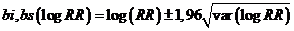 Les bornes inférieure (bi) et supérieure (bs) de l’intervalle de confiance à 95% du logarithme du risque relatif sont obtenues par :